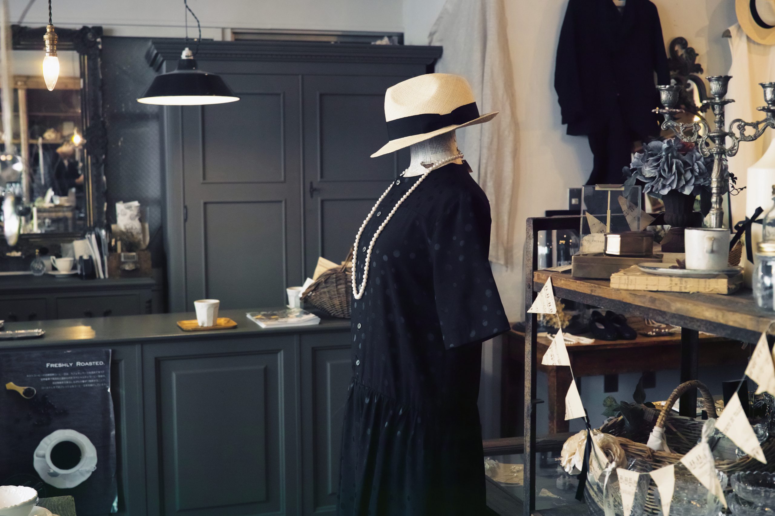 ヨーロッパの街角にあるお店をイメージした店内でコーディネートを楽しみながら、お気に入りの一着をお探しください。